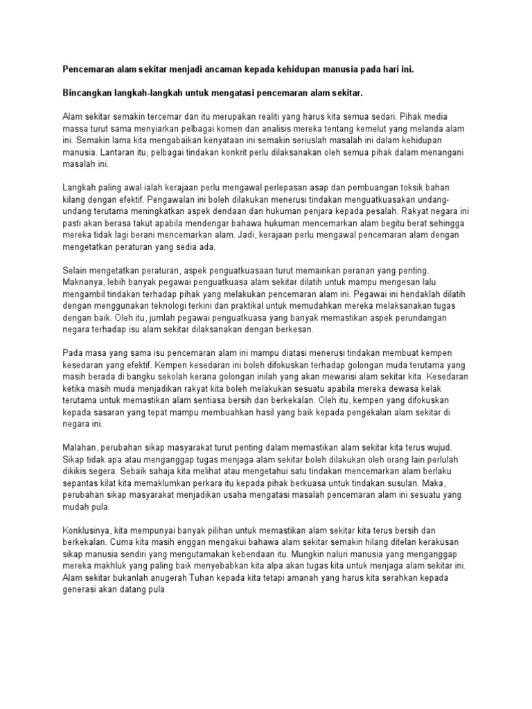 Contoh Karangan Tentang Pencemaran Alam Sekitar Pdf